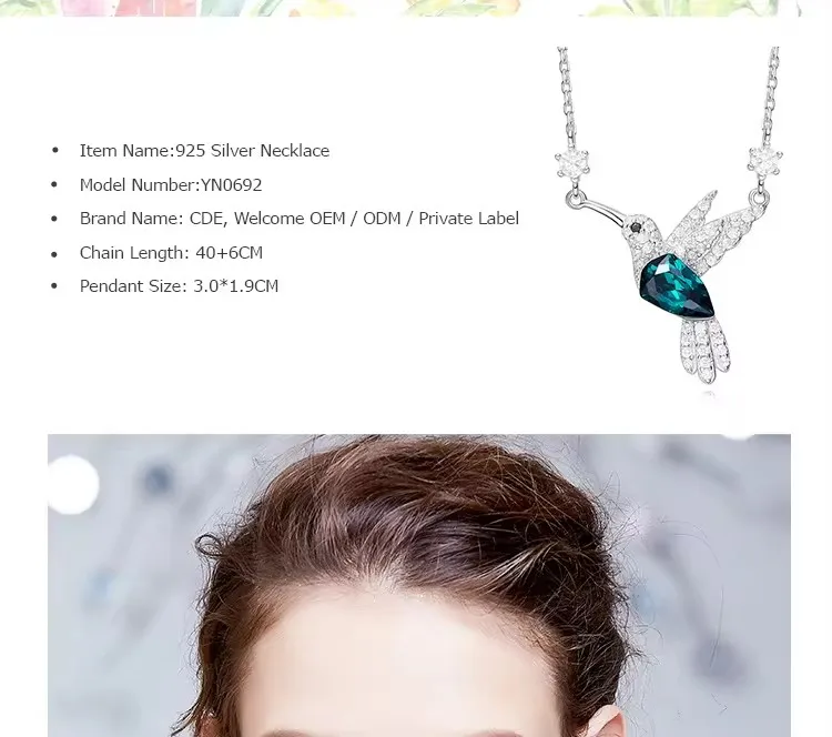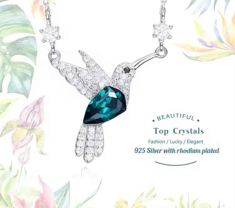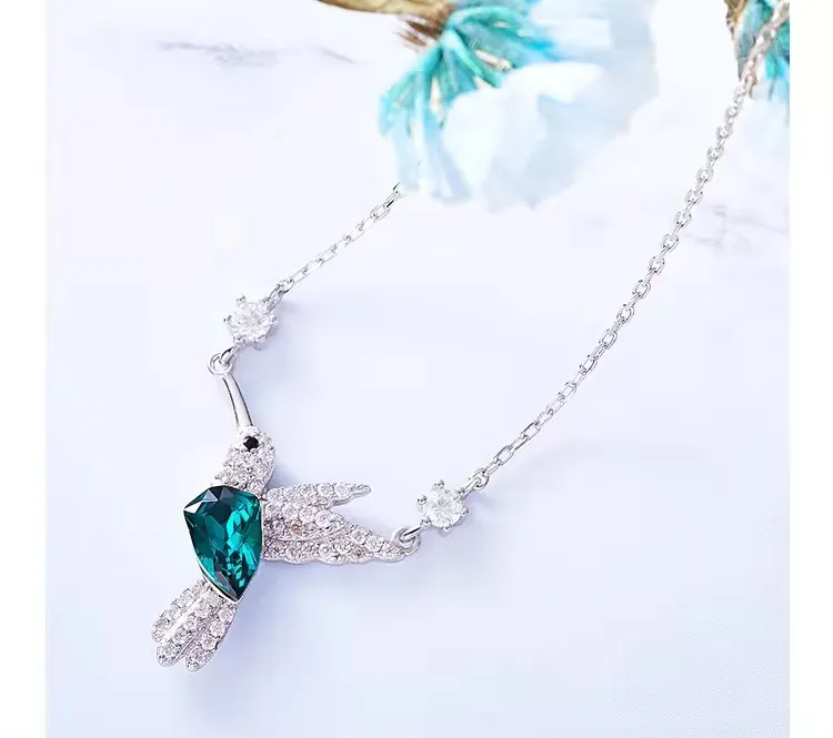 Kingfisher Humming Bird Green Diamond Zircon Pendant Necklace