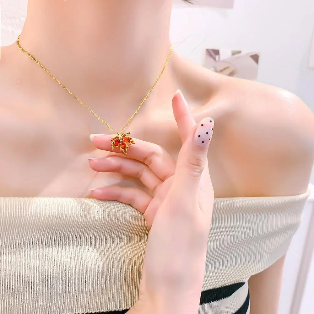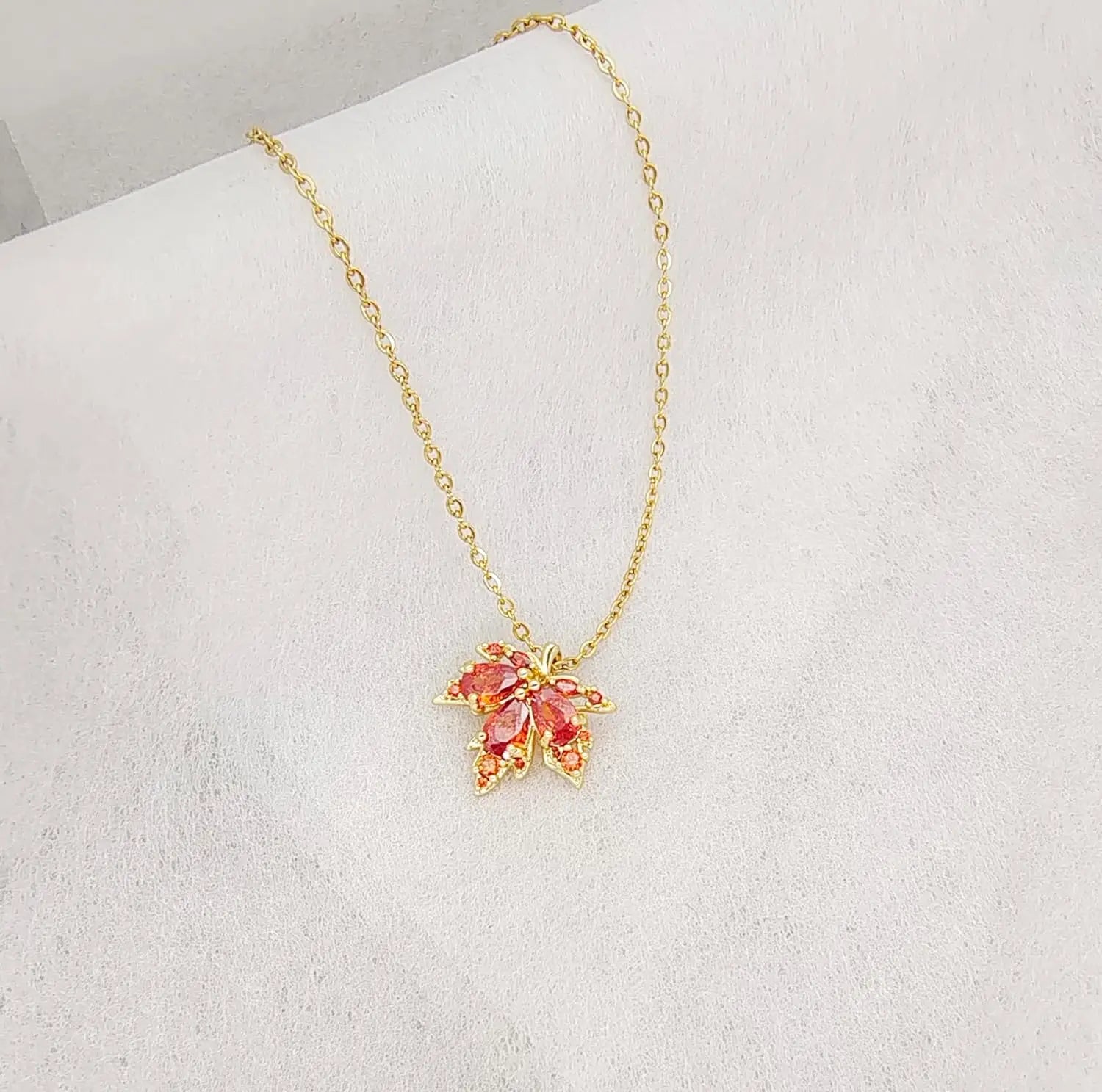 Red Maple Leaf Zircon Korean Pendant Necklace