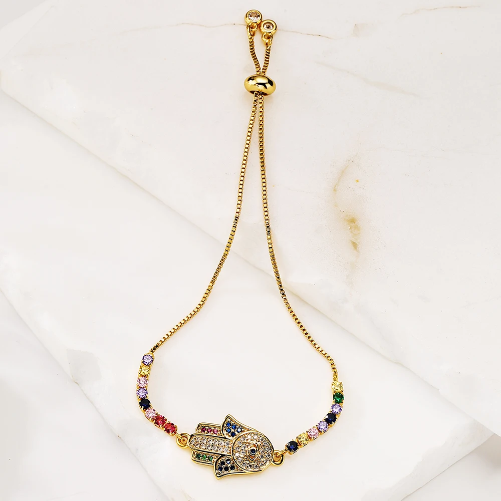 Fatima Palm Hand Adjustable Box Chain Zircon Bracelet