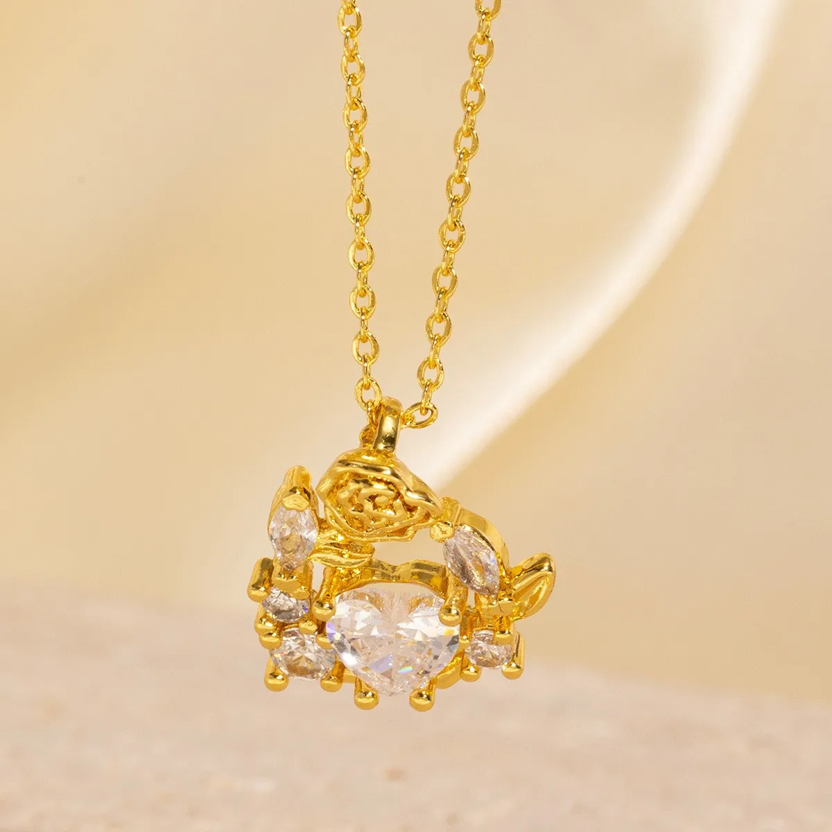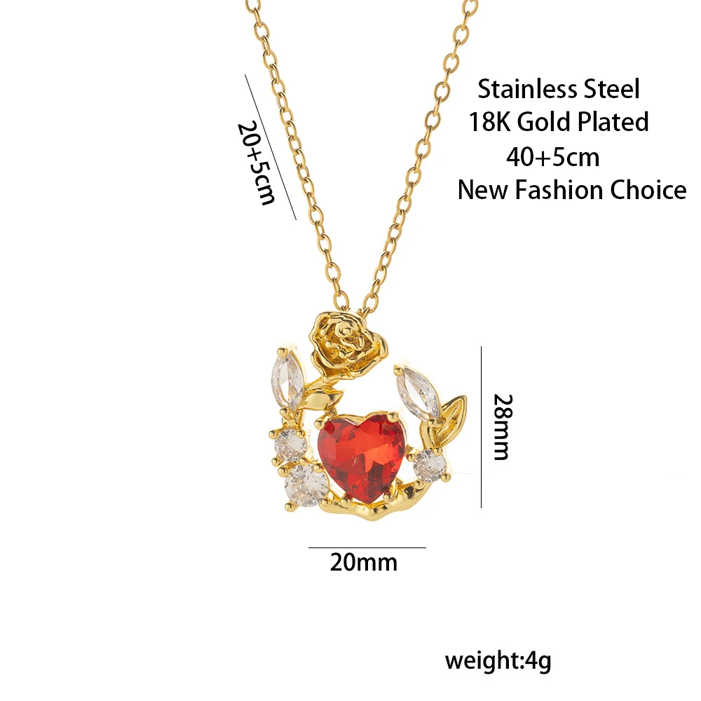 Red Diamond Heart Rose Zircon Pendant Necklace